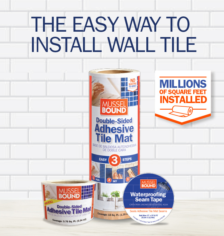 MusselBound® is a strong, double-sided adhesive mat that replaces messy mortar with “peel and stick simplicity”.