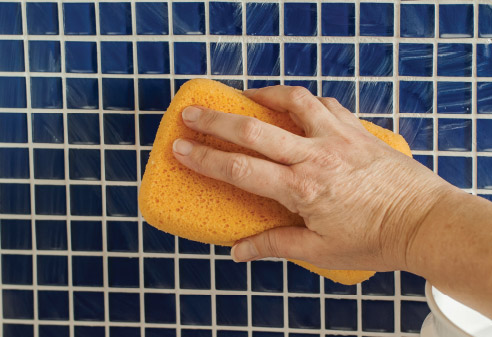 Tile cleaning with sponge